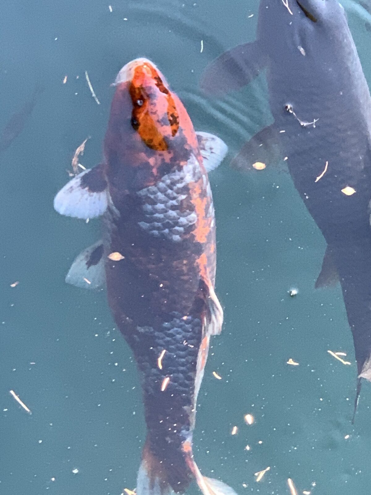 Nel laghetto del parco Sigurtà ci sono tanti pescioloni, uno lo chiamiamo il pesce mucca.